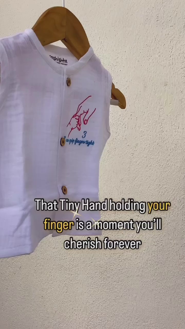 Celebrate your baby’s 3rd month with our touching milestone outfit, featuring a design of a baby holding a parent’s finger. By this age, many babies are beginning to develop a stronger grip, reflecting their growing motor skills and the deepening bond between parent and child. The quote “I can grip your finger tight” perfectly captures this sweet milestone.